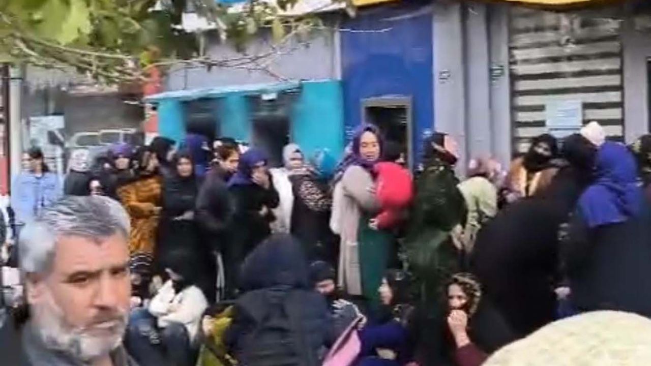 Yardım almak için PTT önünde toplanan vatandaşlar arasında yaşlılar ve çocuklar da yer alırken, uzun kuyruklar dikkat çekti.