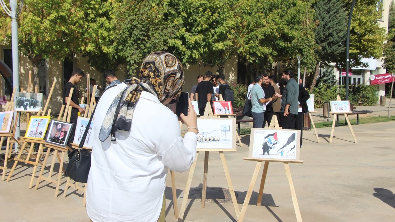 Bu minvalde Artuklu Üniversitesi Rehber Gençlik Topluluğu tarafından Aksa Tufanı ve direnişi gözler önüne seren bir resim sergisi etkinliği düzenledi.