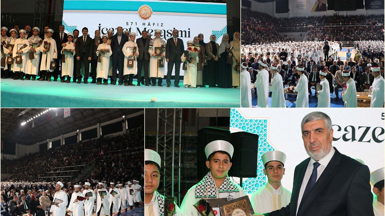 Mushafları İnceleme ve Kıraat Kurulu Başkanı Osman İyişenyürek’in duasının ardından, son üç yıl içerisinde eğitimlerini tamamlayan 571 hafız öğrenciye icazetleri takdim edildi.