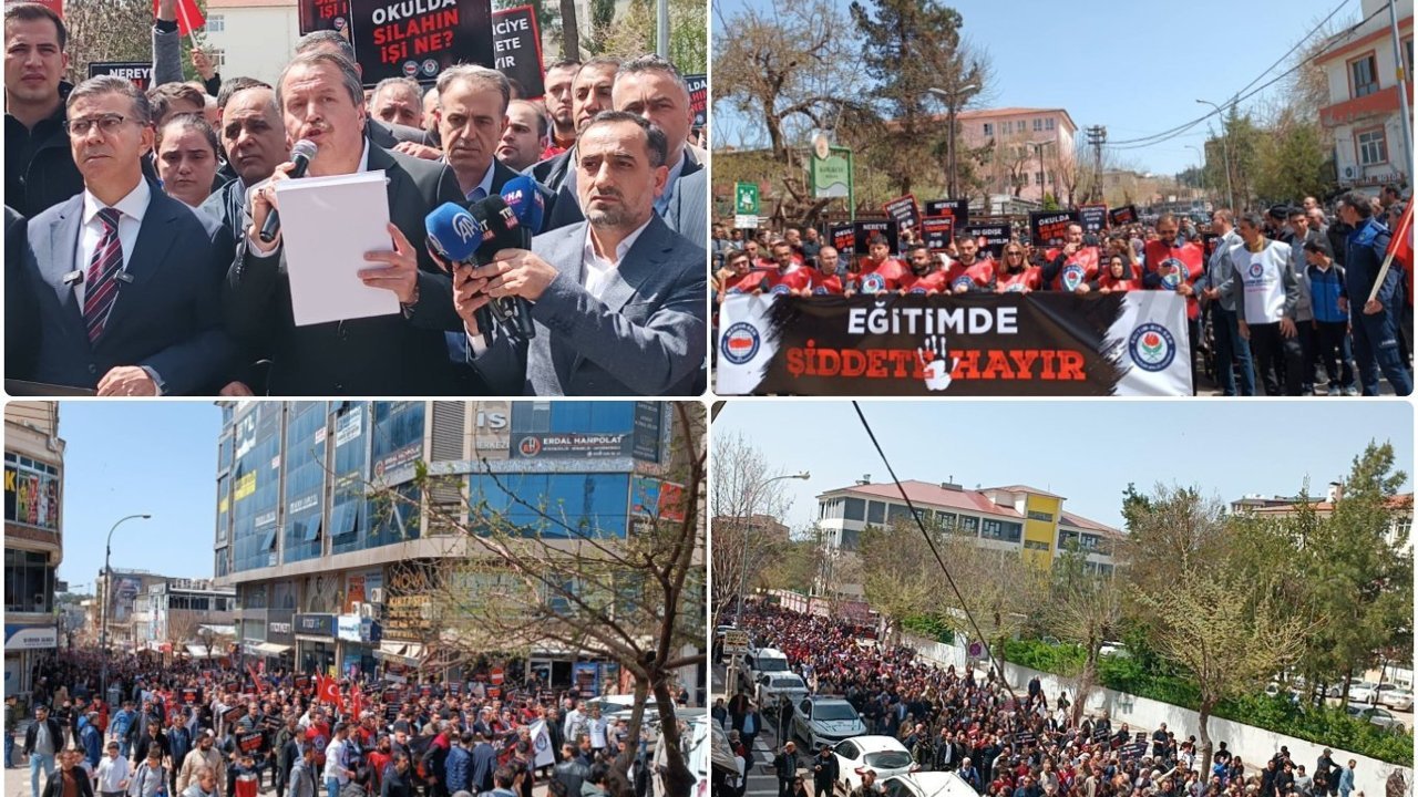 Öğretmenlere yapılan bu saldırıların ülkenin geleceğine yapıldığını vurgulayan Yalçın, 'Velilere de açıkça sesleniyoruz: Öğretmenler sizlerin en kıymetli varlığınız olan çocuklarınıza hizmet için dişini tırnağına takarak çalışmaktadır. Bu temel gerçeği kabul etmek gerekir. Çok basit konularla şikayet edilmek, okulda derste yaşananların aslını öğrenmeden tepki göstermek ve hedef haline getirmekle hiçbir yere varılamaz! Bizler ülkemizin geleceği için sizin kıymetlileriniz çocuklarınız için buradayız. Öğretmeni değersizleştiren, hedef haline getiren anlayış en büyük zararını ilk başta çocuklarımıza ve ailelerine vermektedir. Biz bu kötü anlayışın karşısında öğretmenlerimizin itibarını korumak kadar, çocuklarımızı ve ülkemizin yarınlarını korumak içinde duruyoruz. Bugün Siverekli çocuklar için buradayız. Siverekli öğretmenlerimiz için buradayız. Şunu herkes bilmelidir: Öğretmene uzanan el, geleceğe uzanmıştır! Öğretmene yapılan saldırı, bu milletin vicdanına yapılmıştır! Bu bir uyarıdır! Eğitimciler sahipsiz değildir! Şiddeti normalleştiren, görmezden gelen ve gerekli tedbirleri almayan herkes bu tablonun sorumlusudur! Artık sabrımız kalmamıştır! Devletin en temel yükümlülüğü, vatandaşlarının can güvenliğini sağlamaktır. Eğitimcilerin ve öğrencilerin güvenliğini sağlamak, okullarda huzurlu bir eğitim ortamı oluşturmak ertelenemez bir sorumluluktur. Eğitimciler; savunmasız, korumasız ve yalnız bırakılmamalıdır. Yaptıkları işin onuruna yakışır güvenlik ve çalışma şartları derhal sağlanmalıdır. Öğretmene sahip çıkmak, bu ülkenin geleceğine sahip çıkmaktır! Gerekli adımlar atılmazsa, bu sürecin takipçisi olacağımızı ve mücadeleyi her platformda büyüteceğimizi ilan ediyoruz. Şiddeti nefretle kınıyor, saldırıya uğrayan öğrenci, öğretmen ve okul çalışanlarına acil şifalar diliyoruz. Eylemimize katılan sivil toplum örgütlerimize, tüm eğitim çalışanlarına ve Siverek halkına teşekkür ediyorum.' dedi. (İLKHA)