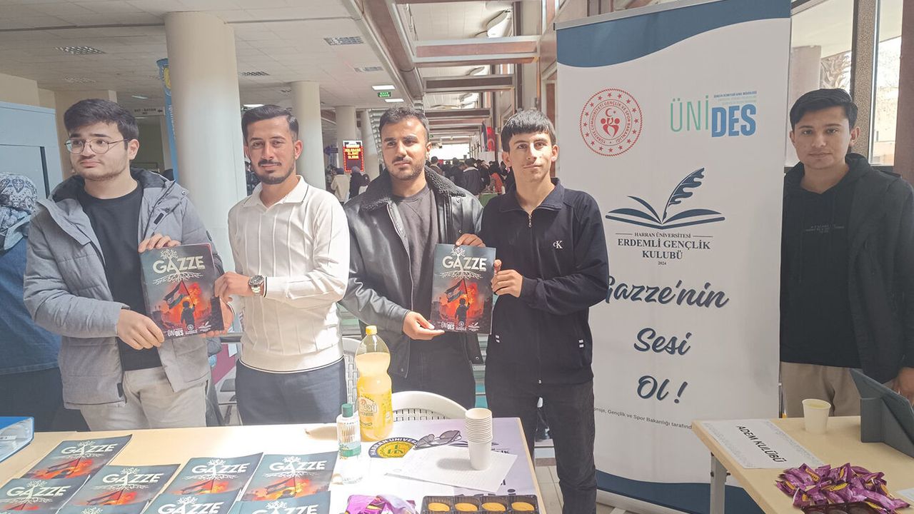 Harran Üniversitesi’nde faaliyet gösteren Erdemli Gençlik Kulübü, üniversite tarafından "Stant Günleri" etkinliğinde Gazze’ye dikkat çekmek amacıyla stant açtı.