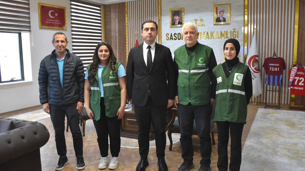 Yeşilay Batman Şube Başkanı Mehmet Orhan Edis ve beraberindeki Genç Yeşilay Yönetim Kurulu üyeleri, Sason İlçe Kaymakamı Furkan Başar'ı makamında ziyaret etti.