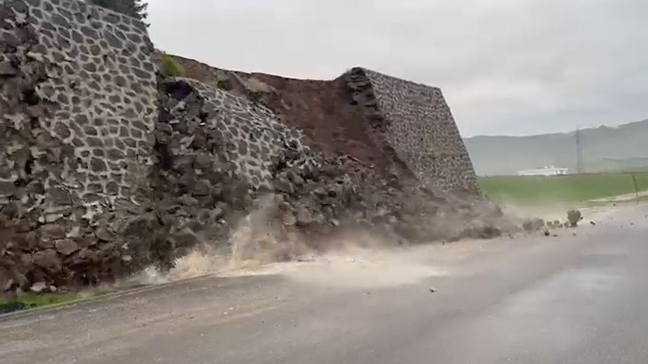 Konak Mahallesi Bozalan Toki yolunda bulunan bir istinat duvarı, aşırı yağışlara dayanamayarak yıkıldı.