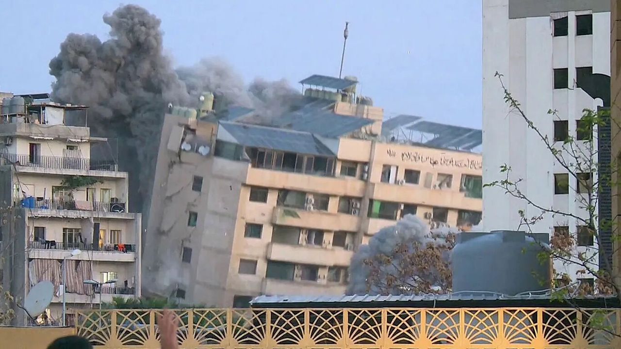 Beyrut'un Başura bölgesinde, siyonist rejim tarafından gerçekleştirilen hava saldırısı sonucu bir konut binası tamamen yıkıldı.