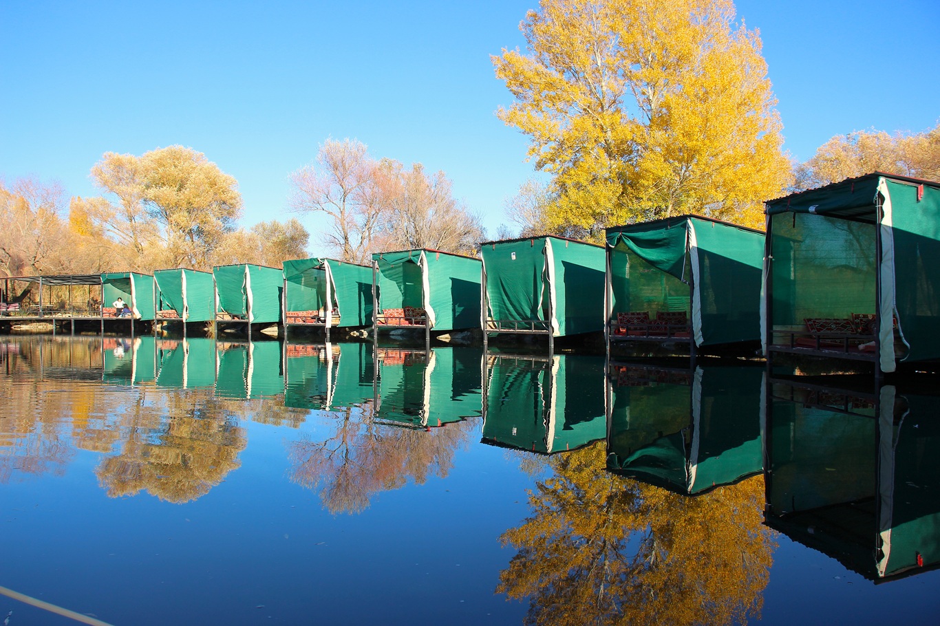 Ağrı merkeze bağlı Çamurlu ve Murathan (Muratxan) köyleri bölgesinde yer alan ağaçlar sonbahar ile yeşil, sarı, turuncunun farklı tonlarına büründü.