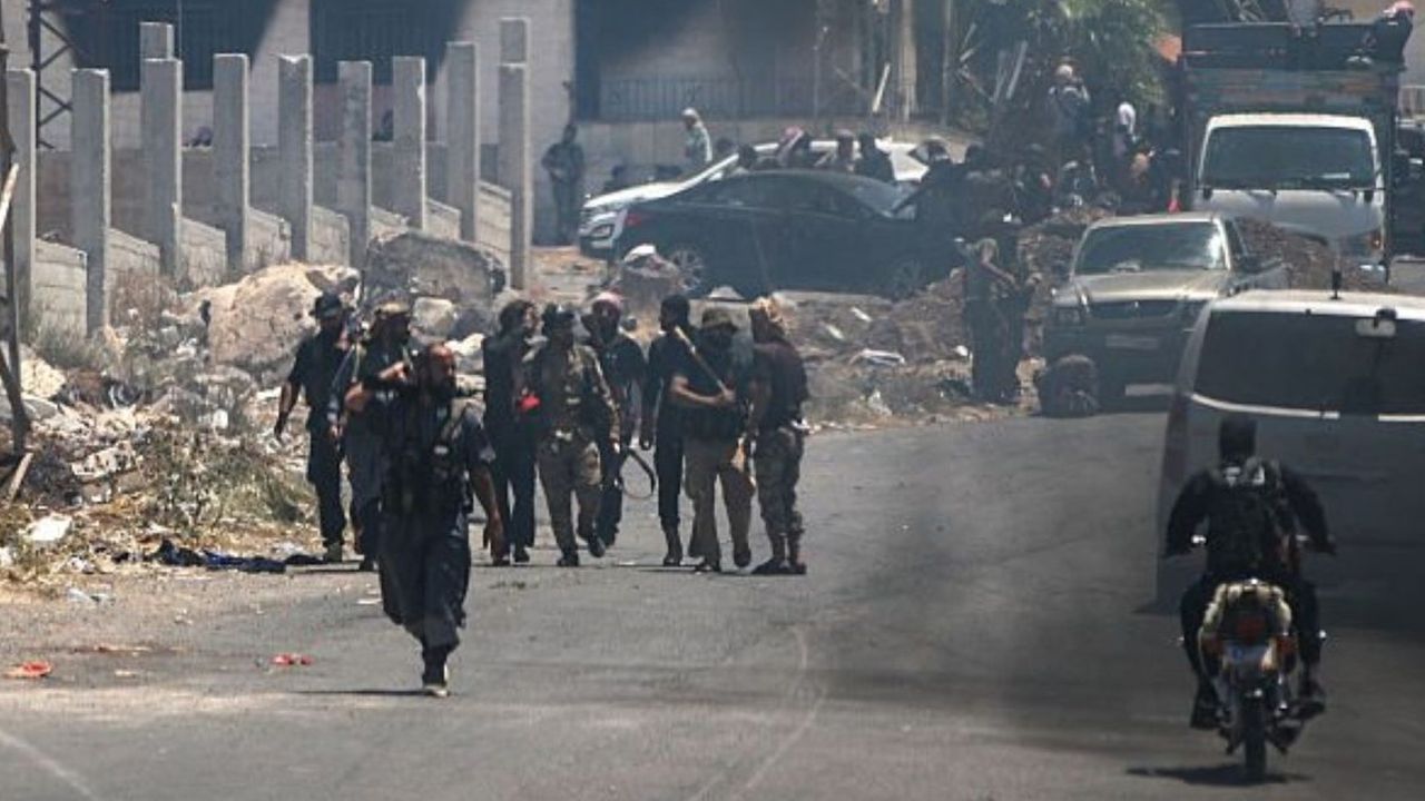 Suveyda'nın El-Kureyya beldesinde askeri bölgeden toplanan silah ve mühimmatların yer aldığı bir araçta patlama meydana geldi.
