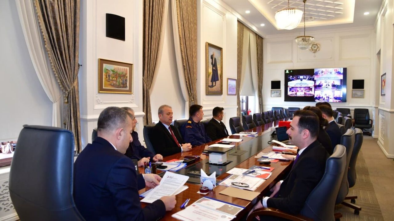 Valilik Toplantı Salonu’nda VKS (Video Konferans Sistemi) yoluyla gerçekleştirilen toplantıya bölge valileri ile emniyet, jandarma, sahil güvenlik ve göç idaresi yetkilileri katıldı.