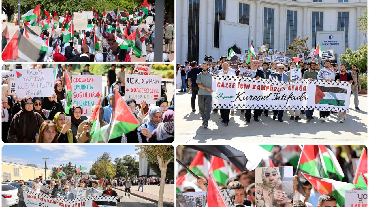 GAÜN İlahiyat Fakültesi önünden başlayan yürüyüşte öğrenciler, İngilizce ve Türkçe “Kahrolsun israil”, “Gazze’de katliam var, sesini yükselt”, “Gazze için kampüsler ayağa”, “Antep’ten Gazze’ye selam” yazılı pankartlar taşıdı. Ellerinde Filistin bayraklarıyla yürüyen öğrenciler, israil aleyhine slogan atarak Gazze’ye destek mesajı verdi.