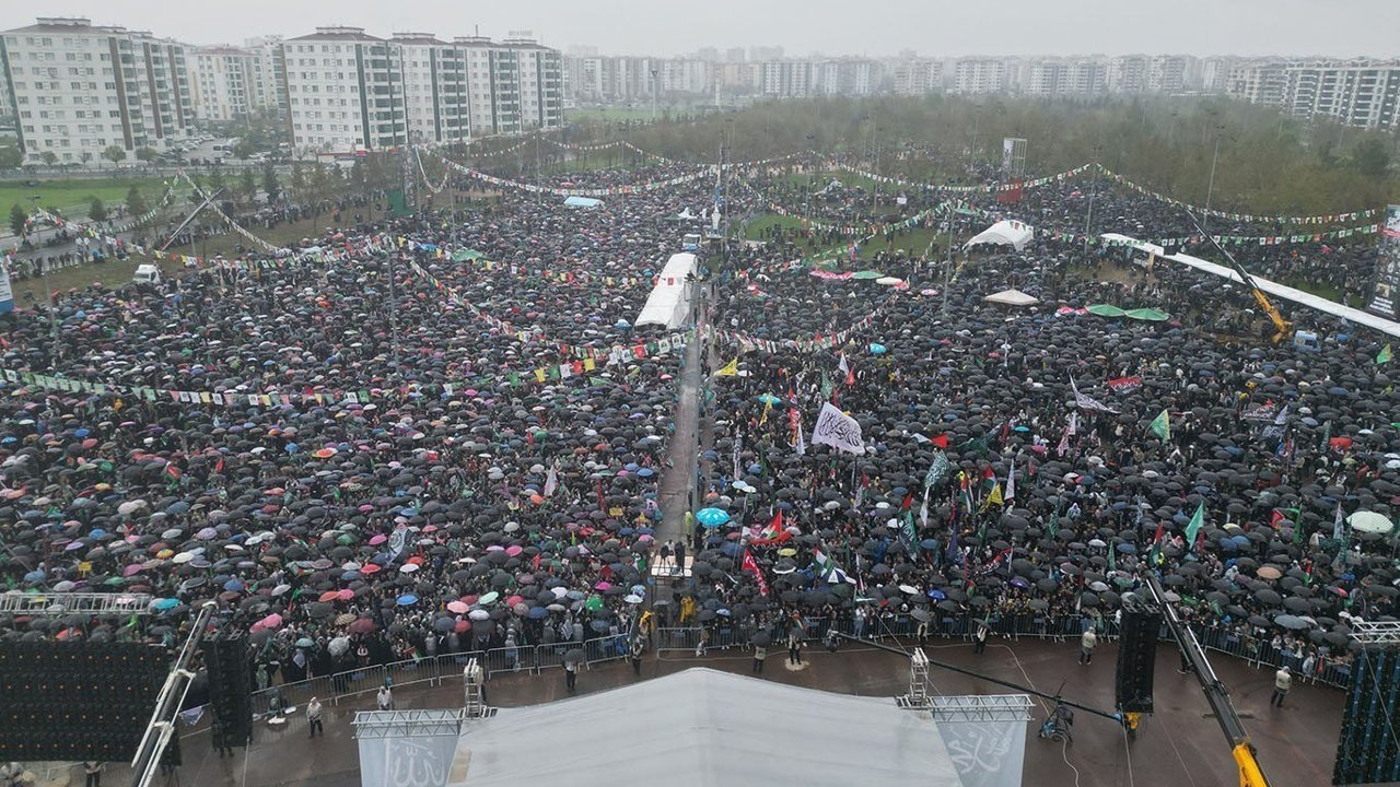Peygamber Sevdalıları Vakfı tarafından bu yıl 'Vahdet ve Kurtuluş Önderimiz Hazreti Muhammed' temasıyla düzenlenen Mevlid-i Nebi mitingi, Bağlar ilçesinde bulunan Nevruz Park Alanı'nda saat 13.30 itibarıyla başladı.