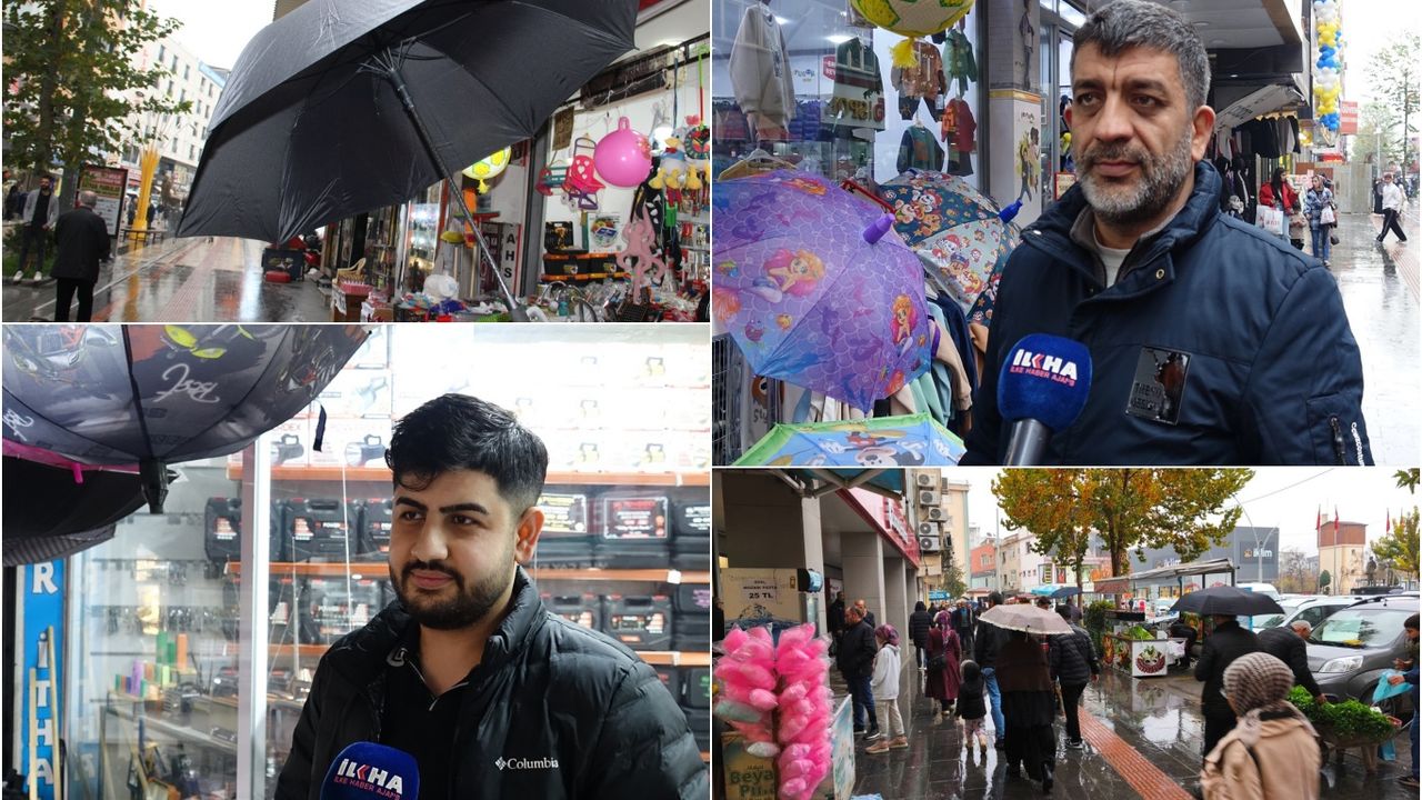 Yağmurun yağmasının hem güzel olduğunu hem de bereketli olduğunu ifade eden esnaf Bilal Taş, "Bununla beraber işlerimiz de biraz açıldı. Kimisi şemsiyelere rağbet etti; bayağı şemsiye satışımız oldu. Bununla beraber ısıtıcılar gibi ürünler de satılmaya başladı. Şu an için durum güzel gözüküyor. Bizde 3–4 çeşit şemsiye var. Çoban şemsiye, normal şemsiye, çocuklar için şemsiye gibi değişik tarzlarda şemsiyeler mevcut. Aile boyu şemsiye de var." dedi.