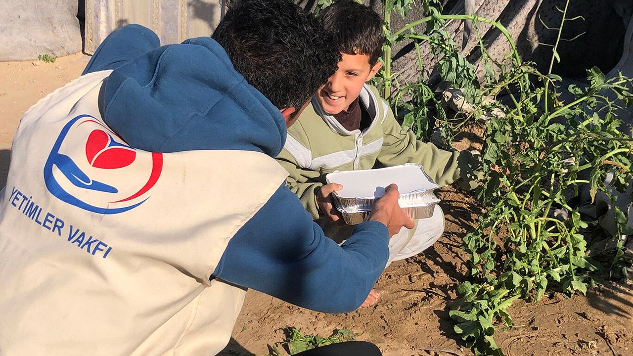 Yetimler Vakfı, hayırseverlerin destekleriyle Gazze'de yetim çocuklar ve ihtiyaç sahibi ailelere yönelik günlük sıcak yemek dağıtımını Ramazan ayında da aralıksız sürdürüyor. Vakıf, "Her Gün Bir Sofra" çalışması kapsamında, zor yaşam koşulları altında hayatta kalmaya çalışan ailelere düzenli olarak yemek ulaştırarak insani krizin ortasında umut olmaya devam ediyor.
