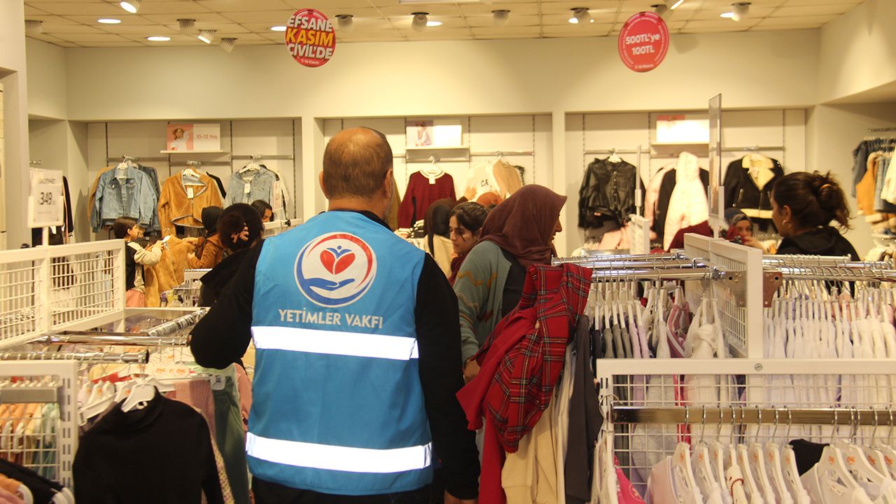 Yetimler Vakfı, kış mevsiminin etkisini göstermesiyle birlikte Diyarbakır'daki ihtiyaç sahibi yetim çocuklara yönelik çalışmalarına hız verdi. Hayırseverlerin desteğiyle yürütülen çalışma kapsamında yüzlerce yetim çocuk, aileleriyle birlikte bir giyim mağazasına götürülerek kendi ihtiyaçlarını kendileri seçme imkânı buldu.