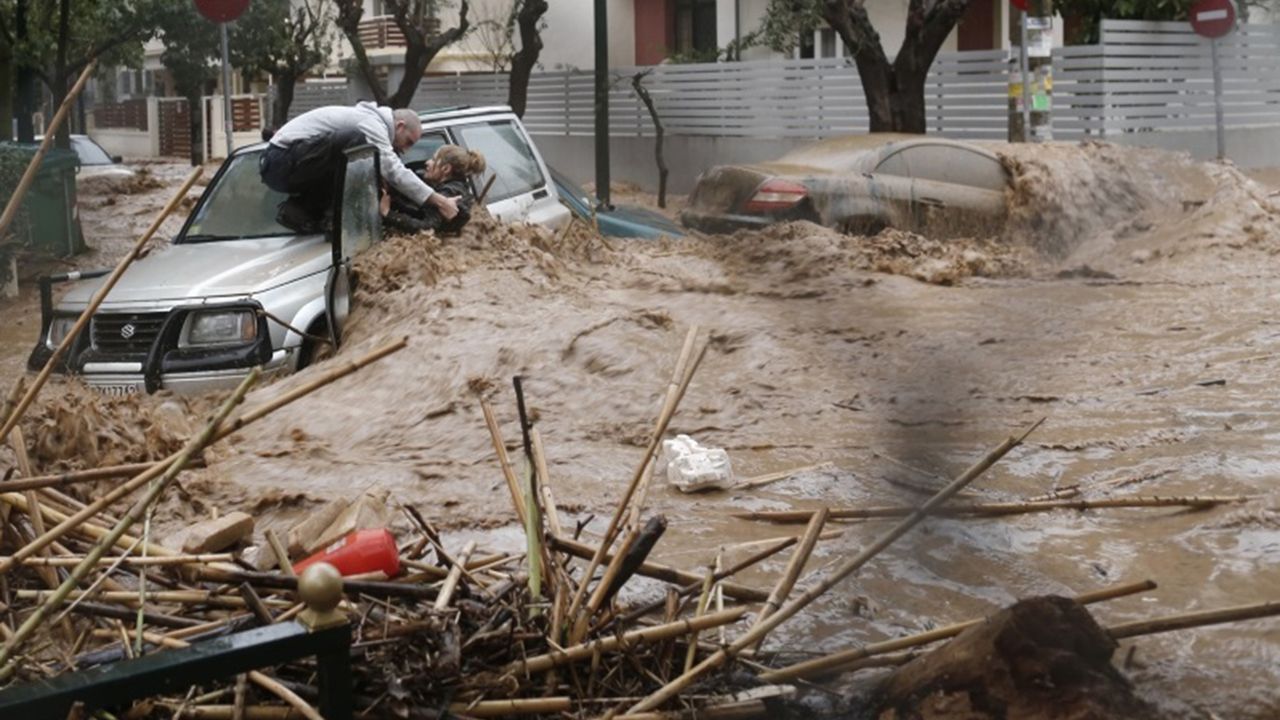 Yunanistan'ı etkisi altına alan şiddetli yağış çok sayıda bölgede sele yol açtı.