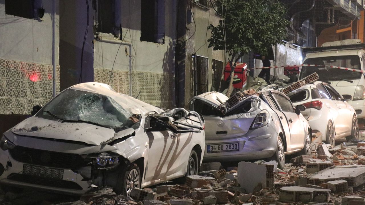 Kentsel dönüşüm kapsamında daha önceden boşaltılan ve yıkım işlemleri için kapı ve camları sökülen binanın çatı katında çökme meydana geldi. 5 katlı binanın en üst katından kopan kütleler, park halinde 3 aracın üzerine düşerek kullanılamaz hale gelmesine neden oldu.